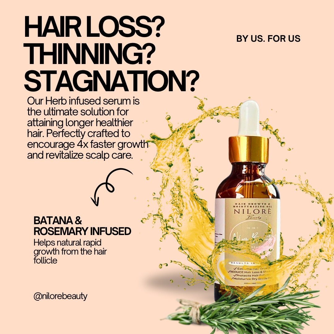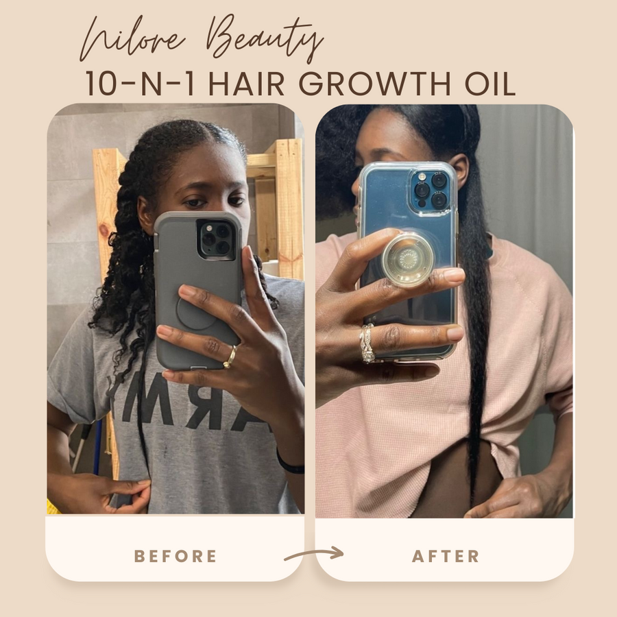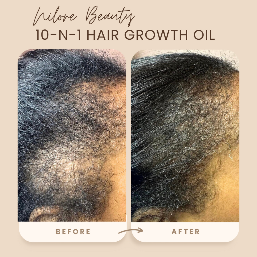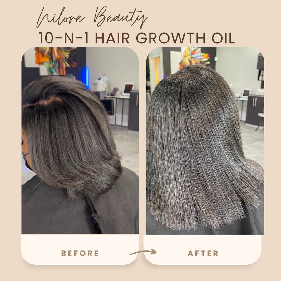 Unlock the secret to vibrant, healthy hair with Nilore Hair Growth Oil, specifically formulated to nourish your scalp and promote hair growth in just 4 weeks! Our unique blend of natural herbs and essential oils and vitamins works synergistically to revitalize your hair from the roots, delivering visible results that you can see and feel.Here are some key benefits to focus on: